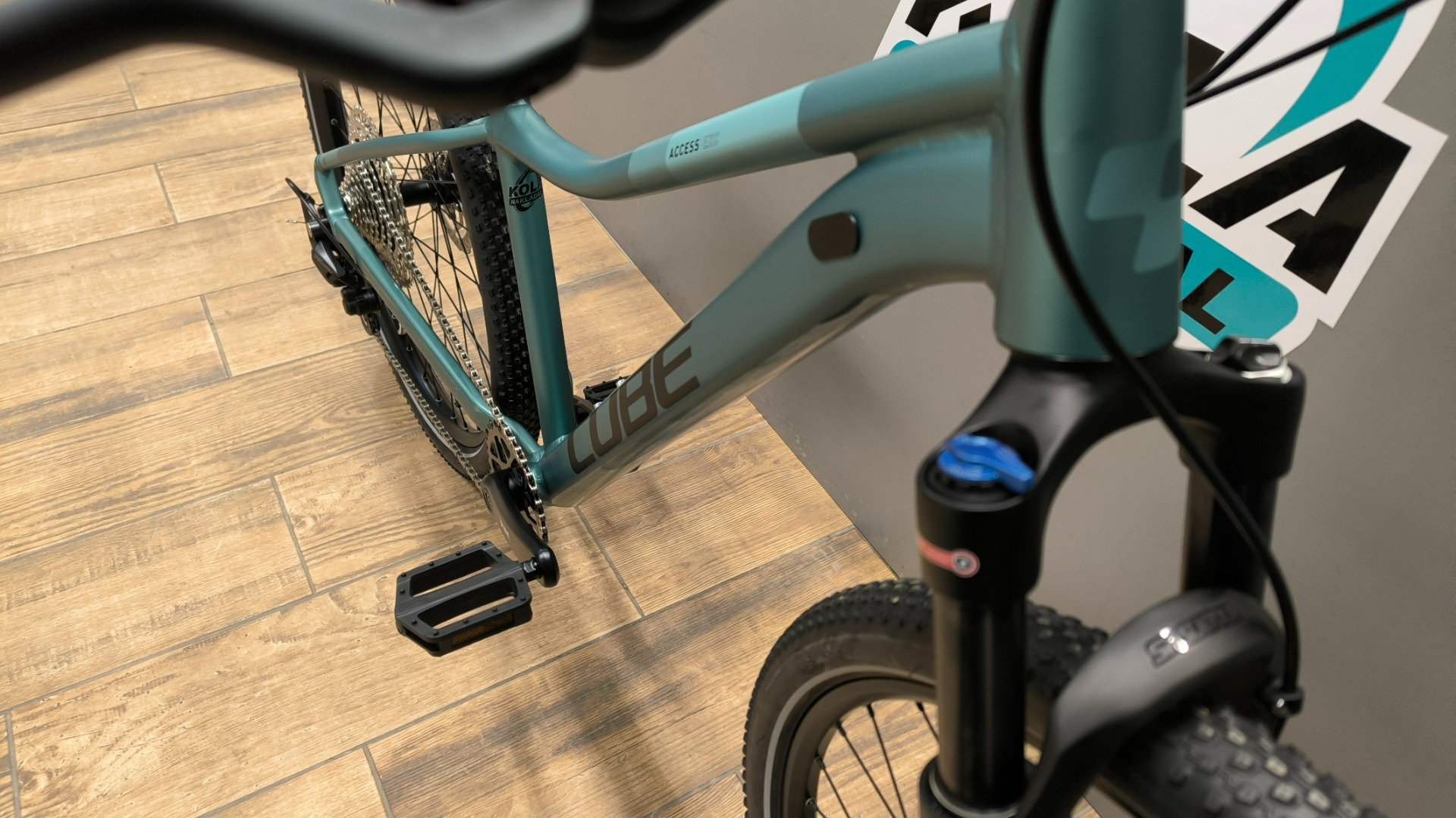 Nové juniorské kolo ve velikosti XS/13" 145-155cm nebo S/14" 150-165cm v custom stavbě postavené na hliníkovém rámu Cube Access s odpruženou vzduchovou vidlicí Suntour vybavené komponenty Shimano s dokladem a zárukou na dva roky, garanční prohlídka po 100km v ceně.