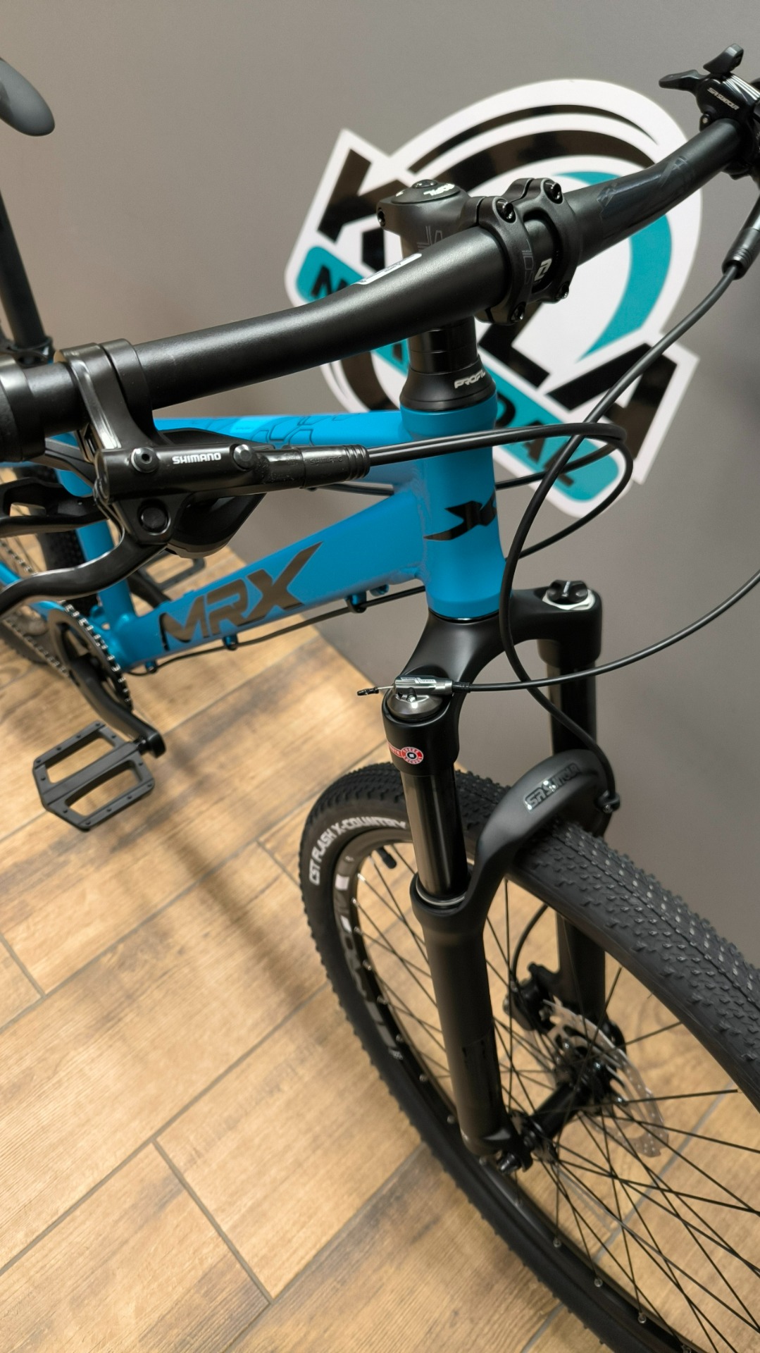 Juniorské kolo ve velikosti XS/13" 130 - 145cm postavené na hliníkovém rámu MRX s odpruženou vzduchovou vidlicí, vybavené komponenty Shimano včetně hydraulických brzd s dokladem a zárukou na dva roky, garanční prohlídka po 100km v ceně, včetně servisního zázemí kamenné prodejny.