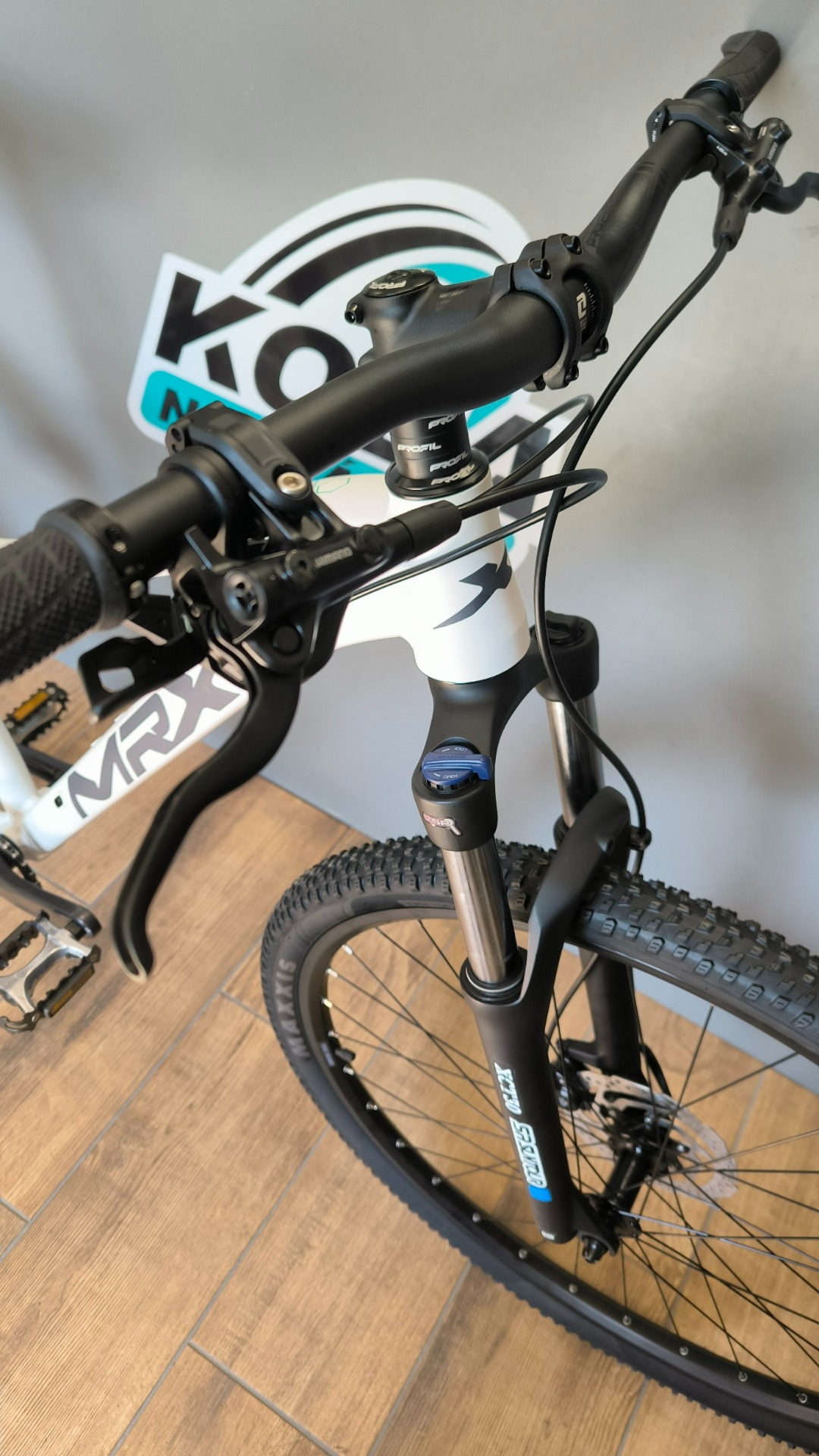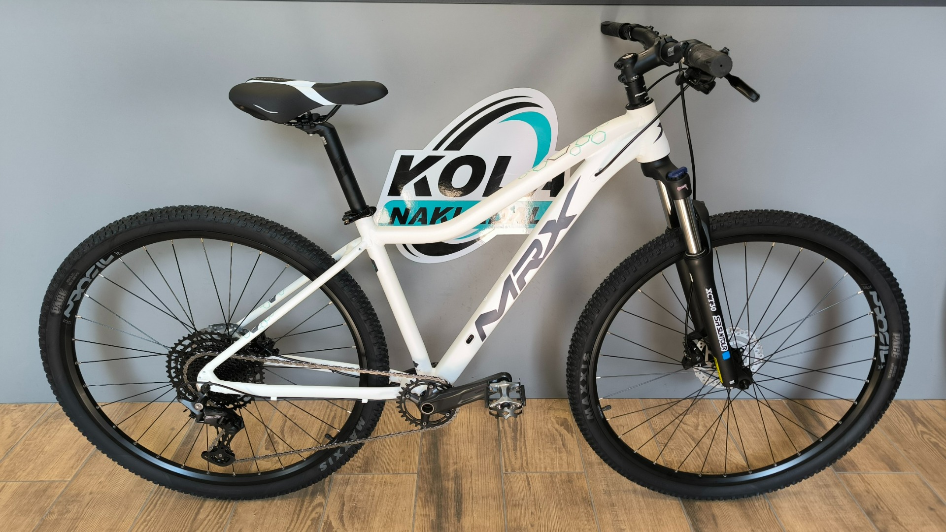 Nové kolo postavené na hliníkovém rámu MRX Lady s odpruženou pružinovou vidlicí Suntour vybavené komponenty Shimano s dokladem a zárukou na dva roky, garanční prohlídka po 100km v ceně.