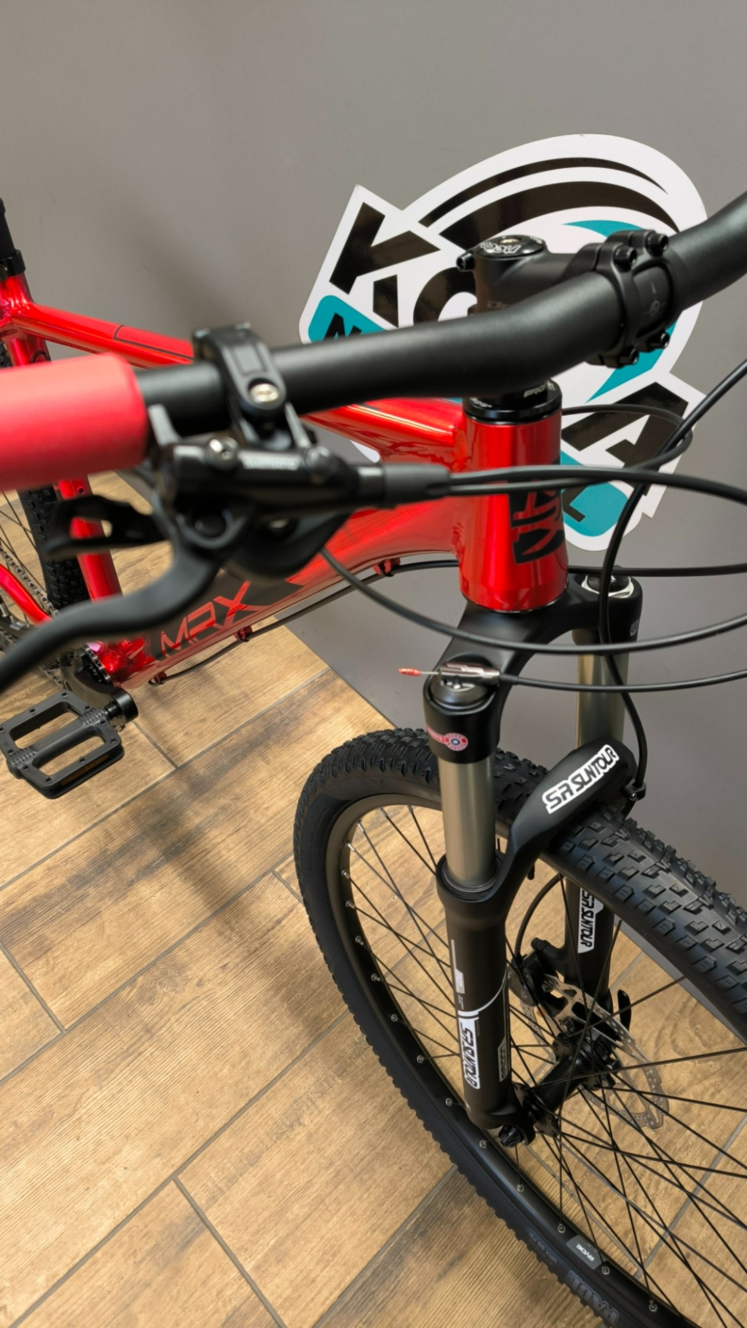 Nové juniorské kolo ve velikosti S/15,5" 145-160cm nebo M/17,5" 155-170cm v custom stavbě postavené na hliníkovém rámu MRX s odpruženou vzduchovou vidlicí Suntour Raidon vybavené komponenty Shimano a teleskopickou sedlovkou s dokladem a zárukou na dva roky, garanční prohlídka po 100km v ceně.