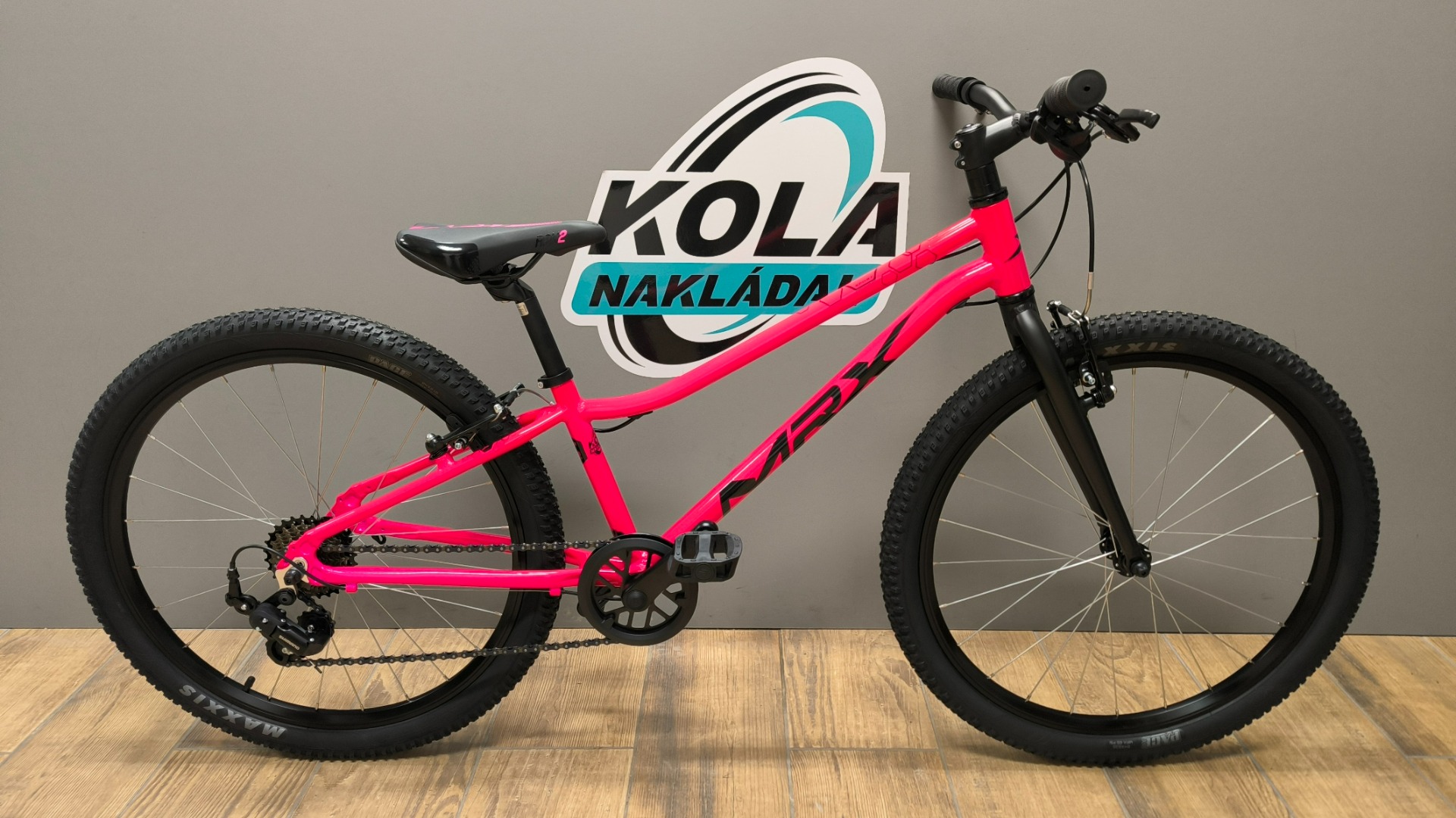 Dětské kolo české značky MRX, kola průměr 24" rám Al. velikosti 11" (280mm) pevná vidlice Al. výbava Shimano převody 1x7 28x14-28z váha 9,5kg. Pro děti velikosti cca 120 - 135cm. Novinka značky MRX pro rok 2025, ložiskové náboje pro hladký chod, integrované vedení (bowdeny řazení/brzd) pro čistý vzhled, tři barevné provedení, atraktivní design, nízká váha a cena.