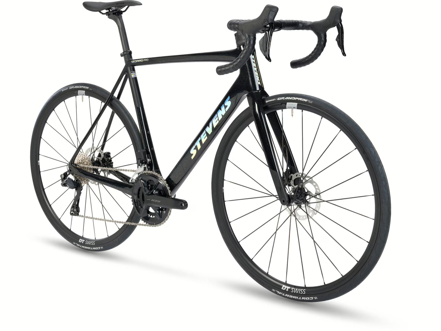 Silniční kolo STEVENS Izoard 105 Di2 s karbonovým rámem, plně bezdrátovou sadou Shimano 105 Di2 2x12 rychlostí a hydraulickými kotoučovými brzdami. Perfektní kombinace moderní technologie a výkonu pro náročné jezdce.